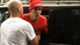 Justin Bieber Restrained by Bodyguard While Charging at Paparazzi
